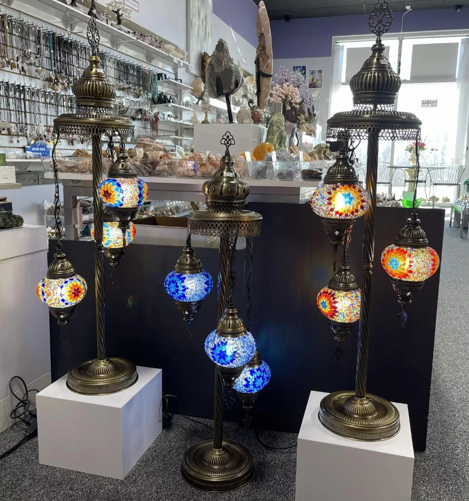 Illuminate your space with our exquisite Turkish lamps. Handcrafted using traditional techniques, these lamps feature vibrant, colorful glass mosaics that create a warm and inviting atmosphere.