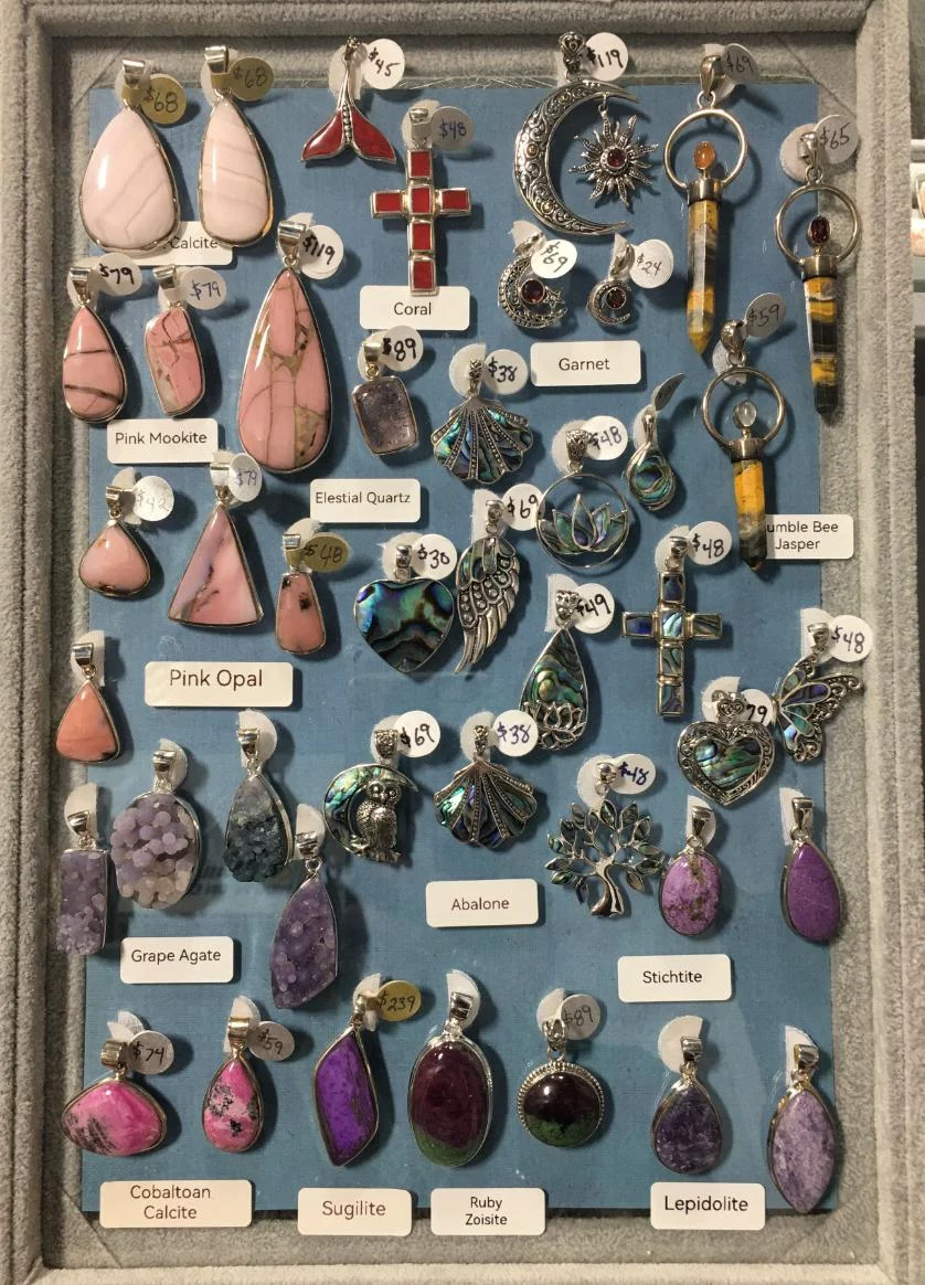 - Unique Designs: Our jewelry often incorporates the same high-quality crystals and fossils found in our shop.